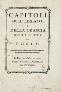 FORLÌ — Capitoli dell'edilato e della grascia della città di Forlì. — In Ravenna : nella Stamperia Camerale - 1784.