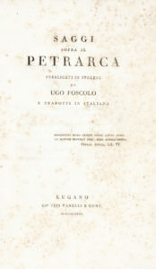 FOSCOLO Ugo — Saggi sopra il Petrarca pubblicati in inglese [...] e tradotti in italiano. — Lugano : co' tipi Vanelli e comp.— 1824. - In-8° (mm 240 x 160).