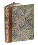 Legatura in mezza pelle con piatti in carta decorata e titoli in oro al dorso.