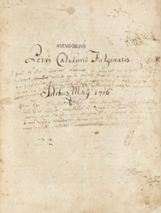 GELLIUS Aulus — Noctes Atticae. — (Al colophon:) Venetiis : per Bernardinu de Choris de Cremona & Simone de Luero - 1489 die XIII Augusti. — In-folio (mm 295 x 210).