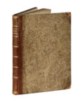 Legatura ottocentesca in mezzo vitello con punte e piatti in carta decorata. Titolo in oro al dorso.