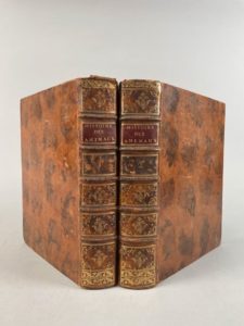 ARISTOTE. Histoire des animaux. Paris, veuve Desaint, 1783 ; 2 forts volumes in-4, reliures de …