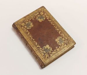 BOCCACE Jean. Il Decamerone di M. Giovanni Boccacio... Florence, héritiers de Philippe Giunta, 14 avril 1527 ; in-4°, reliure du XVIIIe siècle veau acajou, large dentelle dorée en encadrement sur les plats avec grands motifs d'angles mosaïqués, dos à nerfs ornés de motifs dorés, dentelle intérieure et tranches dorées, fente à un mors, coiffes usées. Édition connue sous le surnom de la " Ventissetana ", qui a servi de base à toutes les rééditions jusqu'en 1761. Mais il s'agit en fait d'une contrefaçon exécutée à l'identique en 1731 ; elle ne se différencie de l'authentique que par 3 pages mal chiffrées dans l'originale et ici corrigées.