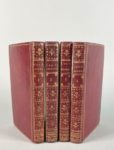 CENT NOUVELLES NOUVELLES, LES Contenant les cent histoires nouveaux, qui sont moult plaisans à raconter en toutes bonnes compagnies, par manière de joyeuseté. Cologne (Amsterdam), P. Gaillard, 1786 ; 4 volumes in-12, reliures de l'époque maroquin rouge, filets dorés sur les plats, dos lissess ornés de motifs dorés, dentelle intérieure et tranches dorées.