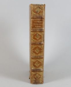 CLÉMENT D'ALEXANDRIE. Opera omnia. Paris, Sébastien Nivelle, 1590 ; in-folio, reliure du XVIIe siècle veau fauve, plats fleurdelisés dans des croisillons dorés, armes au centre, dos à nerfs orné de motifs dorés, tache à deux angles des plats, tranches dorées, usure aux angles.