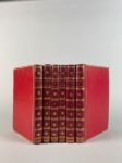COSTUMES DE THÉÂTRE. [PETITE GALERIE DRAMATIQUE ou Recueil des différents costumes d'acteurs des théâtres de la Capitale. Paris, Martinet, Hautecoeur frères, 1796-1843 et années suivantes] ; suite de 600 planches sans titre réunies en 6 vol. grand in-8, reliures du début du XIXe siècle demi-maroquin à long grain rouge, petite dentelle dorée sur les plats, dos lisses ornés de motifs dorés, entièrement non rognés.