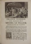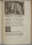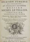 TRADUCTION DE L'ÉLOGE FUNÈBRE composée en latin pas les religieux de l'église de S. Germain des Prez à la mémoire de messire Michel Le Tellier Paris, A. Fournot, 1686.
