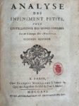 L'HOSPITAL Marquis Guillaume Antoine de. Analyse des infiniment petits, pour l'intelligence des lignes courbes.