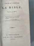POUR ET CONTRE LA BIBLE. Jérusalem (Paris), 1801 ; in-8 basane marbrée de l'époque, dos lisse orné.