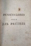 [MARÉCHAL Sylvain]. Pensées libres sur les prêtres. Rome ; Paris, Marchands de nouveautés, l'an Ier de la raison et VI de la République (1798), in-12 dérelié sous couverture bleue.