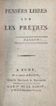 [MARÉCHAL Sylvain]. Pensées libres sur les prêtres. Rome ; Paris, Marchands de nouveautés, …