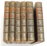 MOLIÈRE. Oeuvres. Paris, [Prault], 1734 ; 6 forts vol. in-4°, reliures de l'époque veau brun, dos à nerfs ornés de motifs dorés, quelques coiffes élimées, fente à plusieurs mors.