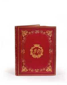 Magnifique exemplaire en RELIURE ROMANTIQUE DE MAROQUIN ROUGE AUX ARMES DE FERDINAND D'ORLÉANS, fils aîné du roi Louis-Philippe mort dans un accident de voiture à Neuilly en 1844. Il était aimé des français.