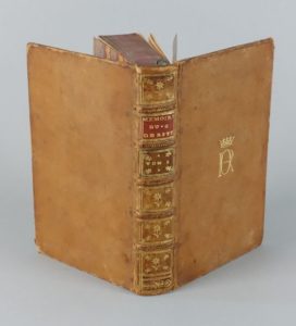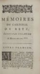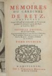 RELIURE. - Cardinal de RETZ. Mémoires. Amsterdam, 1731 ; in-12, reliure de l'époque blond, sur le plat supérieur monogramme OR couronné doré, dos à nerfs orné de motifs dorés, dentelle intérieure.