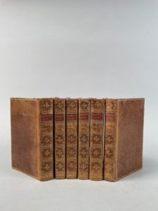 SIDNEY Philippe. L'Arcadie de la comtesse de Pembrok. Paris, Toussaint du Bray, 1624-1625 ; 6 vol. in-12, reliures du XVIIIe siècle veau fauve, filets dorés sur les plats, dos lisse ornés de motifs dorés, pièces rouges, 2 coiffes légèrement frottées.