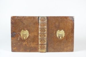 RELIURE AUX ARMES DE PIERRE COMPAIN, banquier en cour de Rome (1597-1675). Il légua ses livres à la Compagnie de Jésus. En reconnaissance, les Jésuites firent frapper ses armes sur les livres acquis grâce a une rente qu'il avait instituée en leur faveur.