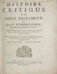SIMON Richard. Histoire critique du Vieux Testament. Amsterdam, Compagnie des libraires, 1685 ; …