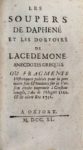 SOUPERS DE DAPHENÉ (LES) et les dortoirs de Lacédémone. Anecdotes grecques [Par A.G. Meusnier de Querlon].