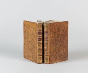 2 vol. in-12, veau tacheté de l'époque, dos à nerfs ornés de motifs dorés, deux coiffes élimées.