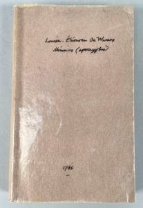 WARENS Louise-Éléonore de. Mémoires de Madame de Warens et de Claude Anet, pour servir de Suite …
