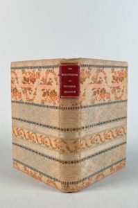 Exemplaire d'Alidor Delzant avec ex-libris et, comme souvent, une reliure en étoffe que l'on croit faite d'après les robes d'une personne aimée.