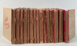 DORÉ Henri. Recherches sur les superstitions en Chine. Chang-Haï, Imprimerie de la Mission catholique, à l'orphelinat de T'ou-sé-wé, Zi-ka-wei, 1911-1929 ; 15 vol. in-8 cartonnages imprimés sans dos maintenus sous ficelles.