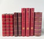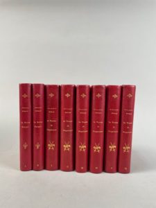 OEUVRES DIVERSES. Paris, L. Conard, 1929-1948 ; 13 vol. in-8, demi-chagrin rouge à coins, dos lisses ornés de motifs dorés : Les Trois mousquetaires ; 2 vol. - Vingt ans après ; 3 vol. - Le Vicomte de Bragelonne ; 6 vol. - La Reine Margot ; 2 vol.