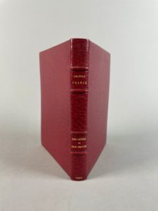 FRANCE Anatole. Les désirs de Jean Servien. Paris, Le Livre, 1924 ; in-8, reliure janséniste maroquin rouge à large grain, dos à quatre nerfs, 5 filets intérieurs dorés, tête dorée, couverture et dos.