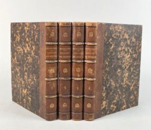 IBN-KHALDOUN. Histoire des Berbères et des dynasties musulmanes de l'Afrique septentrionale. Alger, Imprimerie du Gouvernement, 1852 ; 4 vol. grand in-8, demi-chagrin brun de l'époque, dos à nerfs ornés de motifs dorés.