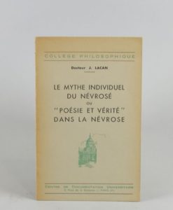 LACAN Jacques. Le mythe individuel du névrosé ou « Poésie et vérité » dans la névrose. Paris, Centre de documentation universitaire, (1953) ; in-12 broché, couverture imprimée, 30 p., texte ronéotypé.