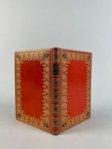 NERVAL Gérard de. Sylvie. Souvenirs du Valois. Préface de Ludovic Halévy. Paris, L. Conquet, 1886 ; petit in-8, reliure de l'époque maroquin rouge vif, dentelle dorée sur les plats avec médaillon mosaïqué aux angles, dos à nerfs décoré dans le même style, dentelle intérieure et tranches dorées, couverture (Bretault).