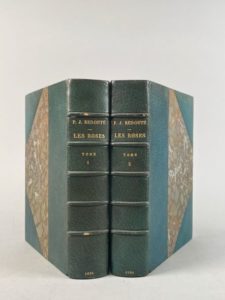 REDOUTÉ Pierre-Joseph. Les roses de P. J. Redouté décrites pas C. A. Thorry. Paris, C. L. F. Panckoucke, 1824 ; 2 forts volumes grand in-8, reliures anciennes demi-maroquin vert à coins, dos à nerfs, têtes dorées, couvertures des 40 livraisons conservées.