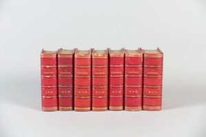 ROCHEFORT Henri. La Lanterne. Paris, n° 1, 31 mai 1868 - n° 75, 13 novembre 1869 ; 75 numéros réunis en 7 vol. in-16, reliures de l'époque demi-chagrin rouge, do à nerfs ornés.