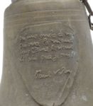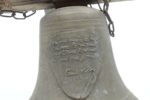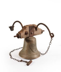 Hauteur 190 mm ; diamètre inférieur 200 mm. La cloche est sommée d'un montage en bois avec tenons métalliques extérieurs. Chaîne tenue par une tige de fer en forme d'arabesque, opposée à une autre de même forme portant un contrepoids de fonte pour assurer le va-et-vient de la cloche lorsqu'on l'agite.