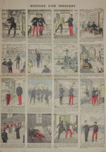 Bande dessinée en 16 vignettes, la dernière annonçant la future réhabilitation de Dreyfus.