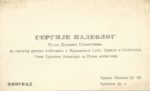 • Trois cartes de visites de Sergeï Paleolog. L’une en français en qualité de commissaire général de l’organisation des refugiés russes en Yougoslavie. Une carte en serbe en même qualité. Une en russe. B.E. ; document concernant le rôle de la Caisse de la libération russe pour la confrérie. Tapuscrit, 1p., in-4 ; copie d’un tapuscrit concernant la recherche de financement en Bulgarie ; lettre des patriotes