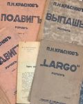 Nous y joignons un tapuscrit avec des corrections autographes de l’ouvrage de P.Krasnov «La Vérité de Dieu». 3 pp., in-4. 1924. ; des reliures des livres «L’exploit», «Largo» et «Vipash» du général Petr Krasnov. En l’état. 1931-1932. ; Feuillet volant avec la lettre ouverte de P.Krasnov en qualité du chef de l’Union générale des combattants russes.