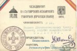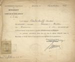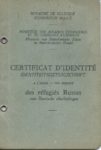 • Cahier №2 comprenant : documents administratifs d’A.Balashov. Parmi eux : justificatif de blessure d’A.Balashov en 1920. Nombreux décrets donnés à A.Balashov pendant la guerre civile ; décret de la décoration de l’ordre «Gallipoli 1920-1921», en deux exemplaires ; carnet d’A.Balashov pendant la guerre civile ; documents concernant sa demande d’exil en Serbie (certains sont en serbe) ; passeport belge d’Andreï Balashov avec sa photographie, 20 octobre 1932, en français. 25 x 17 cm ; documents administratifs belges (demandes des aides et des allocations), autorisation de travail, certificat de réfugié.
