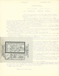 •Correspondance avec V.S. Salimon (représentant en Yougoslavie). LAS et lettres tapuscrites. 1930. 15 pp., format différent. Organisation des nombreux évènements communs ; correspondance avec V. Treskin. Une lettre tapuscrite. 12/1 1930 à Liège ; correspondance avec V.Skalon à Prague. LAS et lettres tapuscrites. 1929-1931. 21 pp., format différent ; correspondance avec D.D. Obolenski. LAS et une lettre tapuscrite. 1929, 3 pp. ; correspondance avec N. Krimski en Allemagne. LAS et lettres tapuscrites. 1930-1932. 8 pp., format différent ; lettre tapuscrite à Élisabeth Malitch à Londres. 26/12 1929.