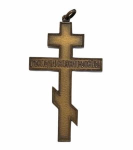 CROIX de la Confrérie de la Vérité russe. Bronze ciselé. Inscription en relief «Dieu protège …