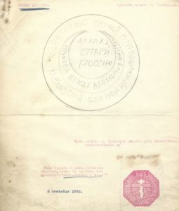 • Машинопись с приложенными образцами листовок БРП с братским флагом. Лист с образцом братского флага и пачка из 100 летучих листовок братского флага. Лист с образцом флага от 10/03/1930; Отпечатки-клише разного формата наклеек и агитационных листовок. Ок. 45 единиц разного формата. 3 листа отпечатков листовок. Пустые почтовые карточки БРП. Клише отпечатки с молитвами и портретом Великого Князя Николая Николаевича. Ок. 10 единиц разного формата.; Подшитая книжка с образцами листовок. 27 стр. 17 х 13 см. со вклеенными клише.; Отработки шрифтов, газеты с отпечатками агит.БРП.