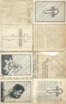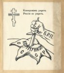 • Tapuscrit avec des tirages des propositions de feuillets volants de la Confrérie de la Vérité russe (représentant le drapeau de la confrérie). Feuillet avec un tirage du drapeau de la confrérie ; un paquet de feuillets volants avec le drapeau ; feuillet avec un tirage du drapeau de la confrérie du 10/03/1930 ; impression des clichés de différents feuillets. Env. 45 pièces de formats diffèrents ; trois planches de clichés imprimés, cartes postales vides de la confrérie ; impression des clichés des feuillets avec un portrait du Grand Duc Nicolas Nikolaevitch et une prière. Env. 10 pièces de formats diffèrents. Livret des propositions des clichés. 27 pp., in-12. ; clichés imprimés de typographies différentes ; journaux avec des représentations de feuillets de la propagande de la confrérie.