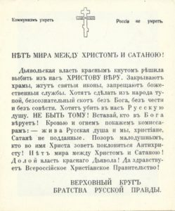 LOT comprenant : trois paquets des feuillets «Dieu protège la Russie !». 14 x 11 cm. ; deux paquets de dépliants aux chiffres de Nicolas II, avec le portrait du tsar et un poème d’Andreï Balashov à l’intérieur ; paquet de feuillets avec le drapeau de la confrérie. 9 x 12,5 cm. ; paquets des feuillets «La prière» ; deux paquets de feuillets de petit format. T.B.E.