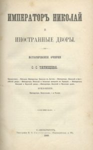 L’Empereur Nicolas et les cours étrangères. Les essais historiques de S.S. Tatichev.