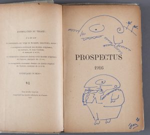 Exemplaire enrichi de deux dessins originaux à l'encre bleue de Jean Cocteau (3e feuillet, et page 41, ce dernier avec petits manques au bord), le premier signé " Jean ", le second d'inspiration très libre.