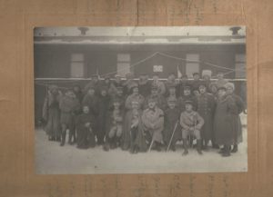 Nous y joignons une photographie représentant la Mission française militaire en Sibérie. Photographie en noir et blanc, 240 x 305 mm (avec passepartout), notes manuscrites indiquant les noms des personnes photographiées (général Janin, capitaine Carton, Valenta, Kapnist, etc.).