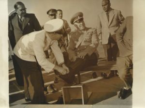 Фотография, сделанная во время визита Маршала Жукова в мемориал Махатмы Ганди, Нью Дели, 25 января 1957 года.
