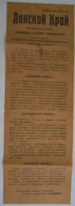LOT : La Région du Don, 24 avril (45 x 15 cm) ; Les Petits Bogateri, (102 cm) ; Revue "Vetchevou blagovest" № 1-2, 15 septembre 1919, 16 pp. (dernière page manquante).