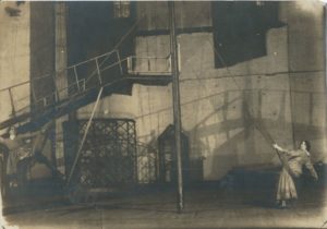 Оформление сцены спектакля «Лес» в театре Мейерхольда. Серебряно-желатиновый фото отпечаток. Печать с обратной стороны «А.Тамарин 25 марта 1927 Москва». 166 x 236 мм.