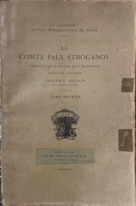 Le comte Paul Stroganov. Imprimerie nationale, Paris, 1905. Traduction en français par F. Billecocq. En trois vols, in-4, reliure en papier de l’éditeur.